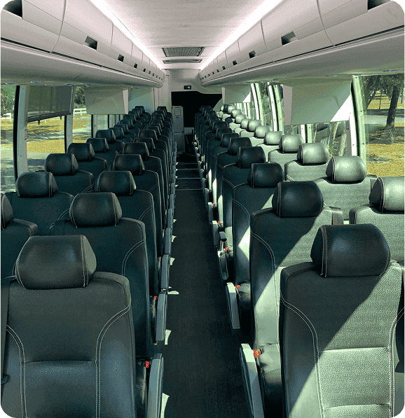 Charter buses in the company’s fleet are all modern, premium models outfitted with the best amenities for comfort, safety, and entertainment while on the road.